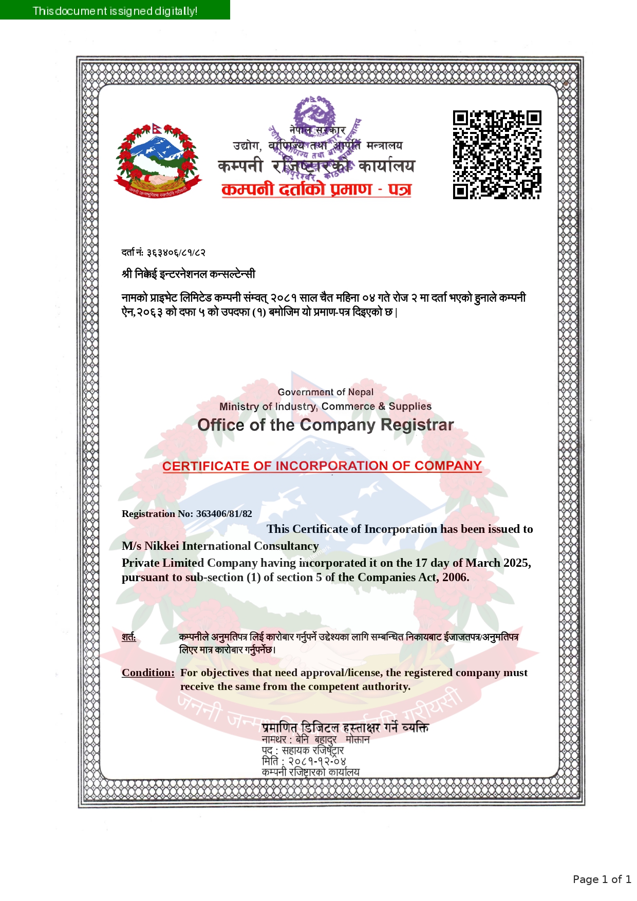 Company Register Certificate